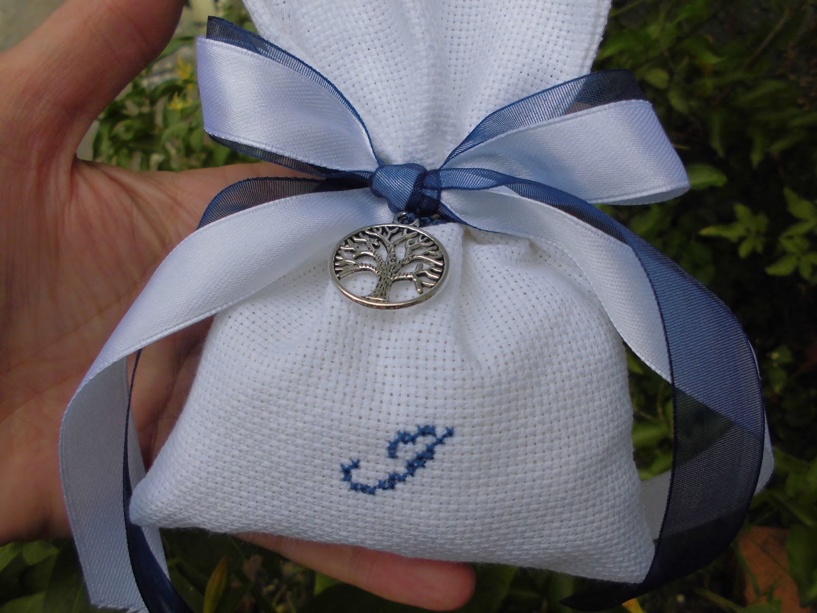 bomboniera adatta a qualsiasi ricorrenza...composta da sacchettino bianco,realizzato e ricamato a mano,misure 12 cm per 15 cm,comprensivo di tulle,5 confetti mandorla o cioccolato della ditta Crispo e bigliettino con nome e data...più ciondolo albero della vita in metallo argentato senza nickel,art CAS2...per maggiori informazioni contattatemi anche tramite whatsapp